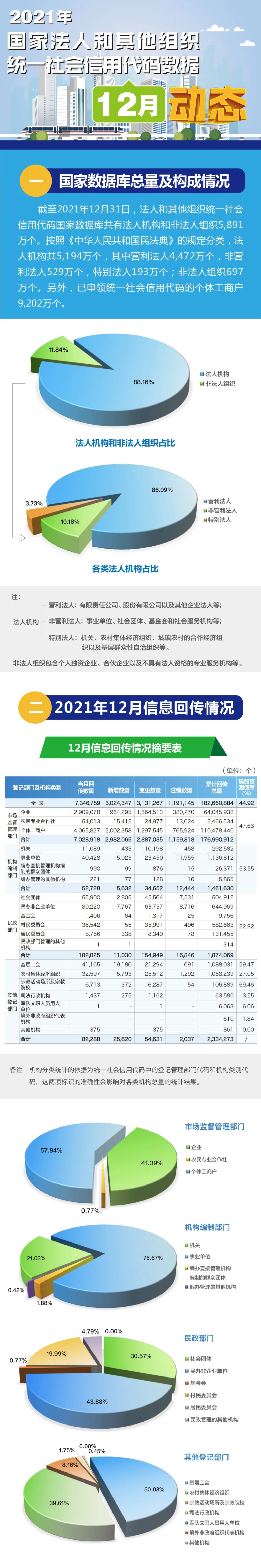 【图解】2021年国家法人和其他组织统一社会信用代码数据12月动态