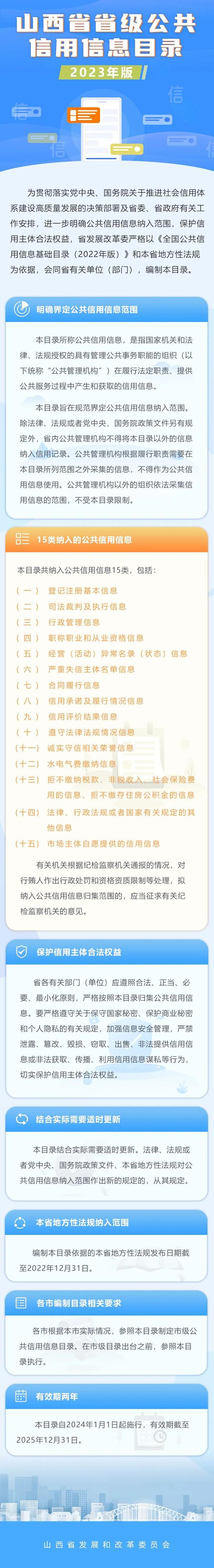 【图解信用】山西省省级公共信用信息目录(2023年版)